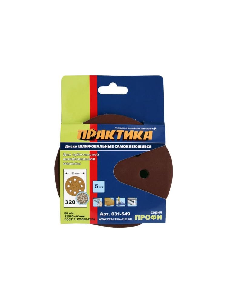 Круги шлифовальные ПРАКТИКА на липкой основе 8 отверстий, 125 мм (P320), 5 шт