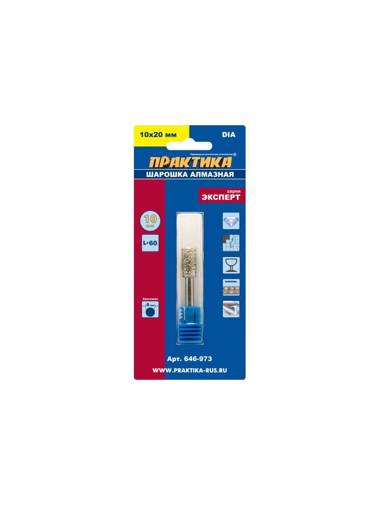 Шарошка алмазная ПРАКТИКА 10*20 мм, хвост 6 мм, цилиндрическая