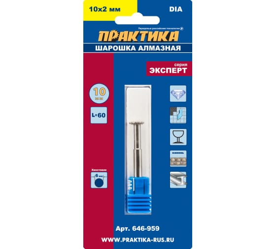 Шарошка алмазная ПРАКТИКА 10*26*60 мм, хвост 6 мм, дисковая