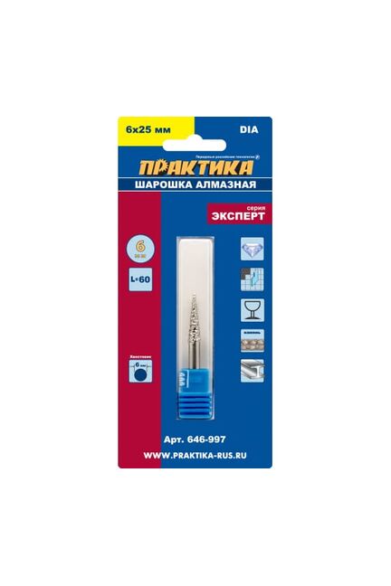 Мах диаметр - 6 мм, диаметр хвостовика - 6 мм, тип обработки - резьба/гравировка/фрезерование, рабочая длина - 25 мм, форма - коническая с заостренным концом (М), материал насадок - алмазное напыление, тип оснастки - шарошка, по камню - да, по стали - да, по пластику - да, по кафелю - да, по граниту - да Алмазная шарошка коническая 6×25 мм с хвостовиком 6 мм — для точной шлифовки и обработки керамики, стекла, камня, фарфора и твёрдых сплавов.
