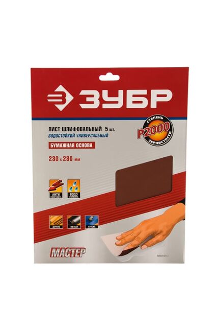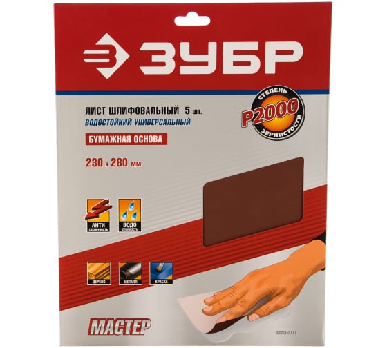 Водостойкий шлифлист Р2000 для финишной обработки, 230x280 мм, 5 шт. Идеален для мокрого шлифования дерева, металла и пластика.