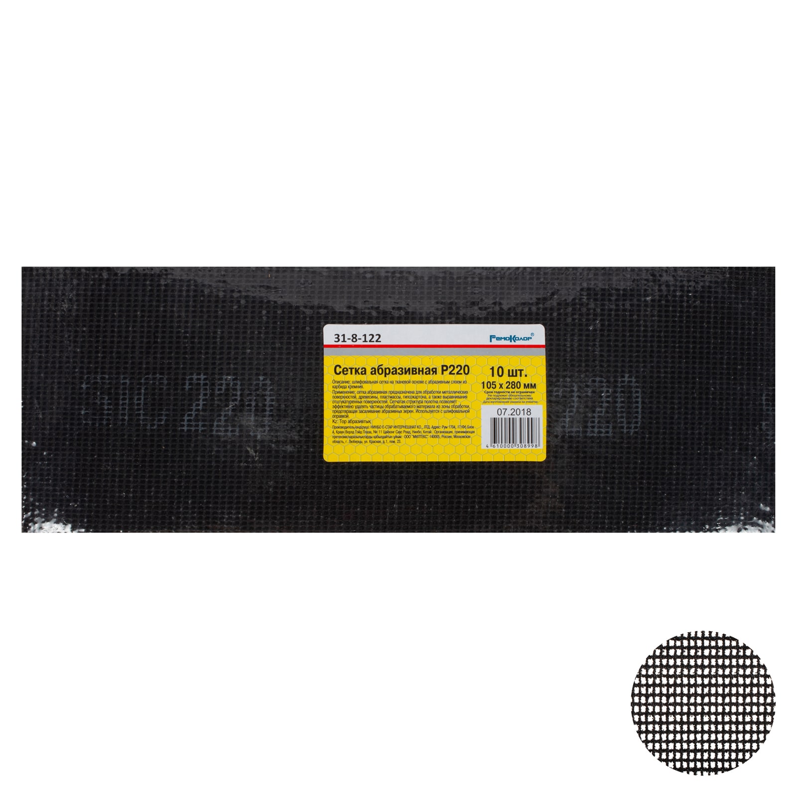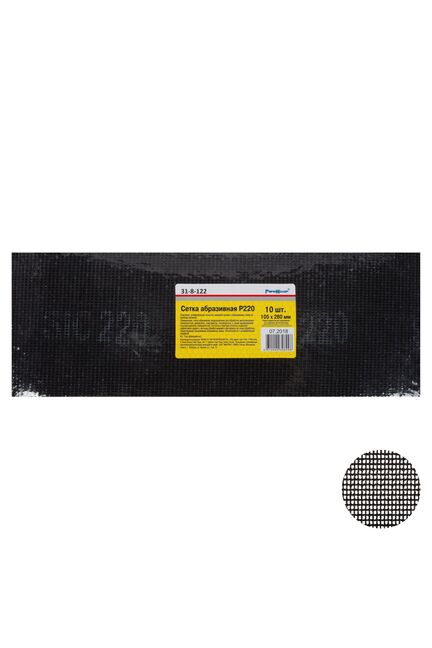 Абразивная сетка P220, 105×280 мм, 10 шт. Подходит для чистовой шлифовки, устойчива к износу и не забивается пылью даже при длительной работе.