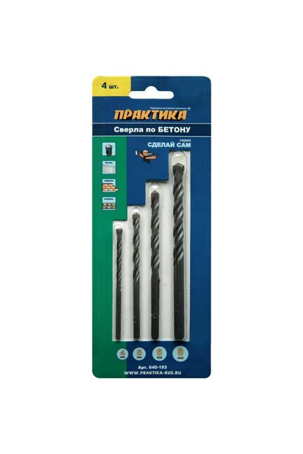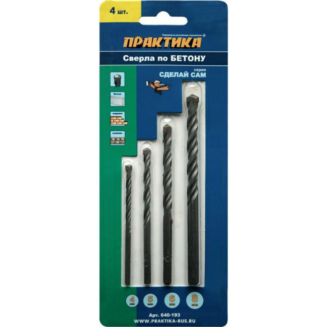 Набор сверл по бетону ПРАКТИКА "Сделай сам", 4 шт, 4,5,6, 8 мм
