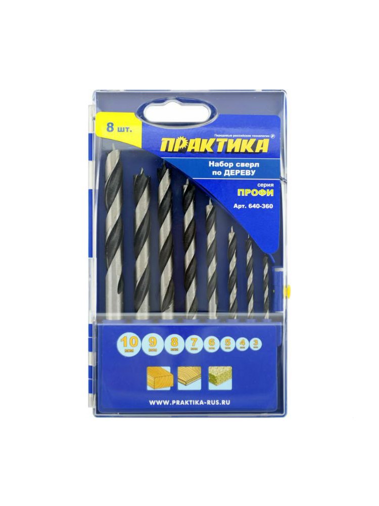 Набор сверл по дереву ПРАКТИКА, 8 предметов