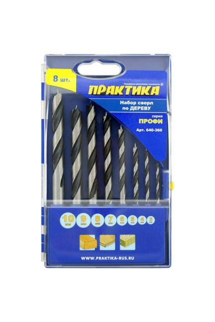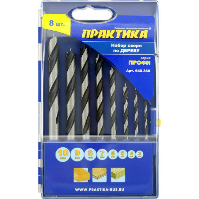 Набор сверл по дереву ПРАКТИКА, 8 предметов