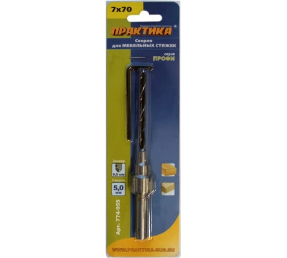 Сверло для мебельных стяжек ПРАКТИКА 7х70 мм
