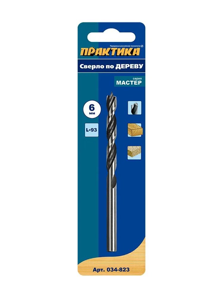Сверло по дереву ПРАКТИКА 6х90 мм, серия "Мастер"