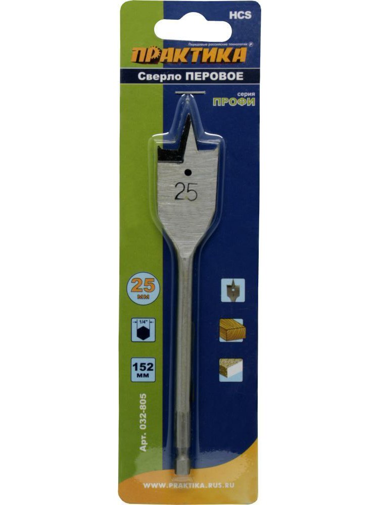 Сверло по дереву ПРАКТИКА перовое 25*152мм