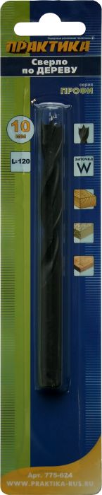 Сверло по дереву ПРАКТИКА спиральное 10*120мм