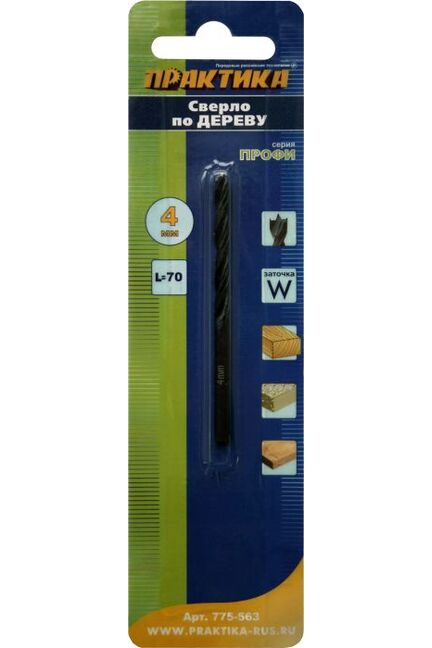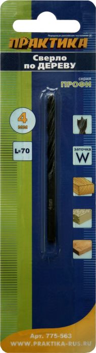 Сверло по дереву ПРАКТИКА спиральное 4*70мм