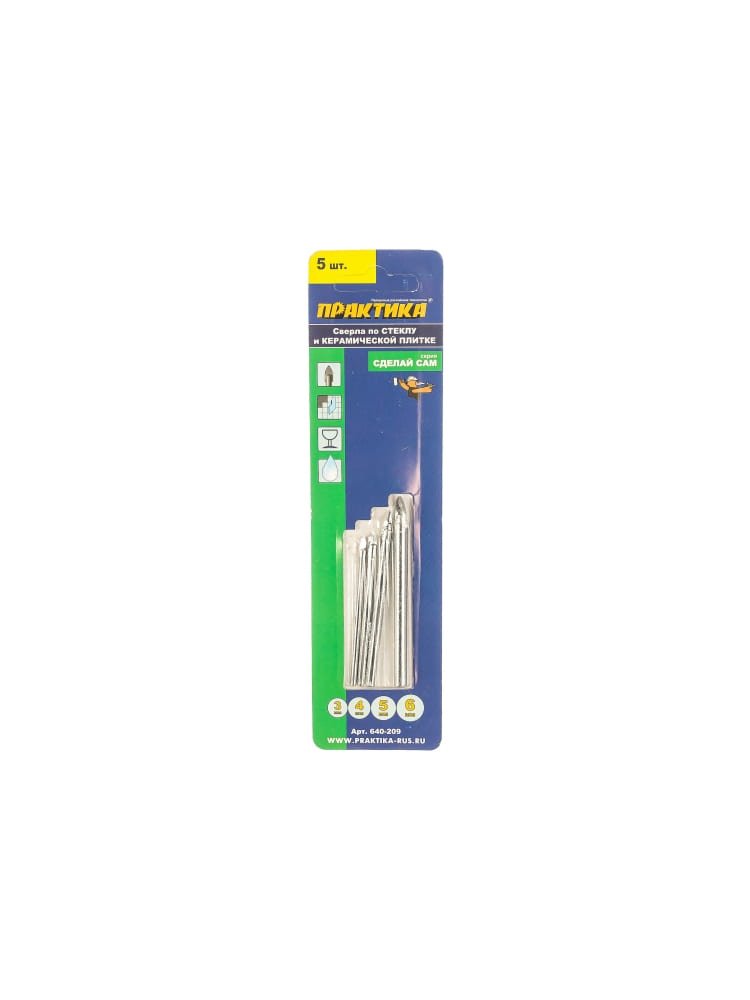Набор сверл по стеклу и керамике ПРАКТИКА "Сделай сам", 4 шт, 3,4,5,6 мм в Комсомольск-на-Амуре