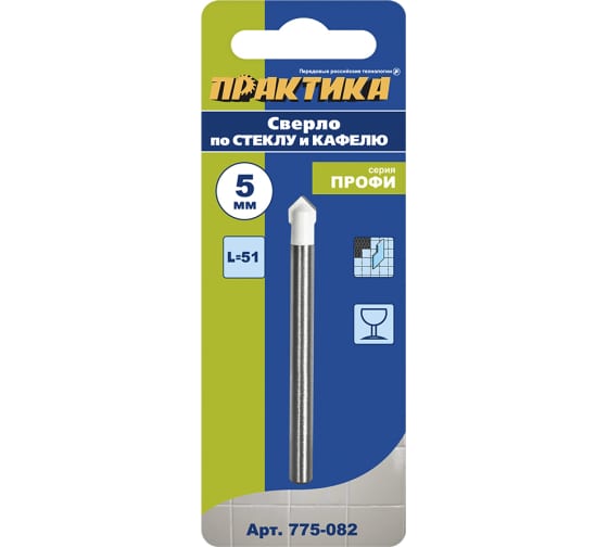 Сверло по кафелю и стеклу ПРАКТИКА 5*51мм в Комсомольск-на-Амуре