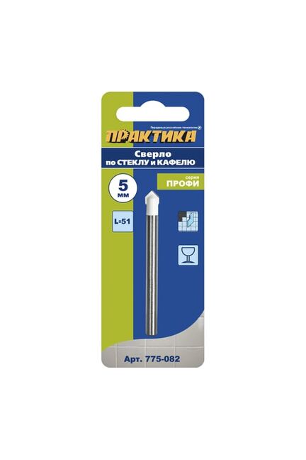 Сверло по кафелю и стеклу ПРАКТИКА 5*51мм