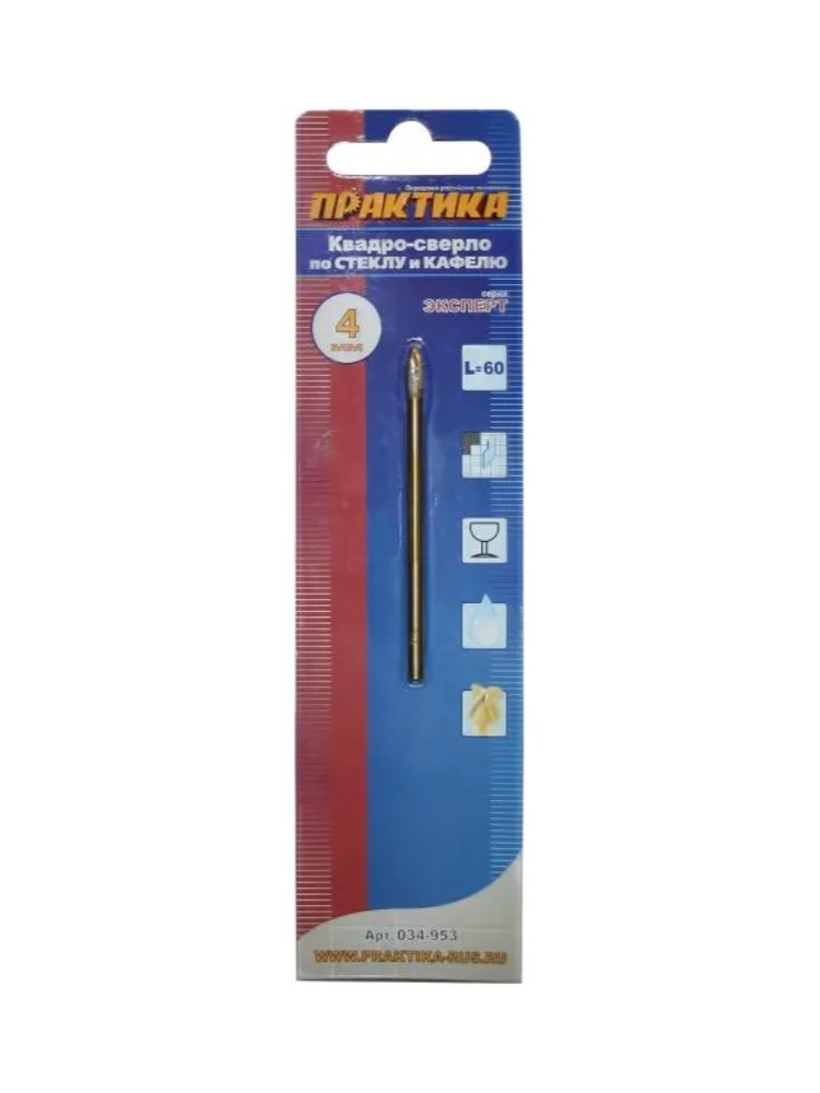 Создайте точные отверстия без сколов и трещин благодаря профессиональному сверлу для стекла 4х60 мм серии «Эксперт» — надежный выбор для точного сверления стекла, керамогранита, кафеля и плитки.