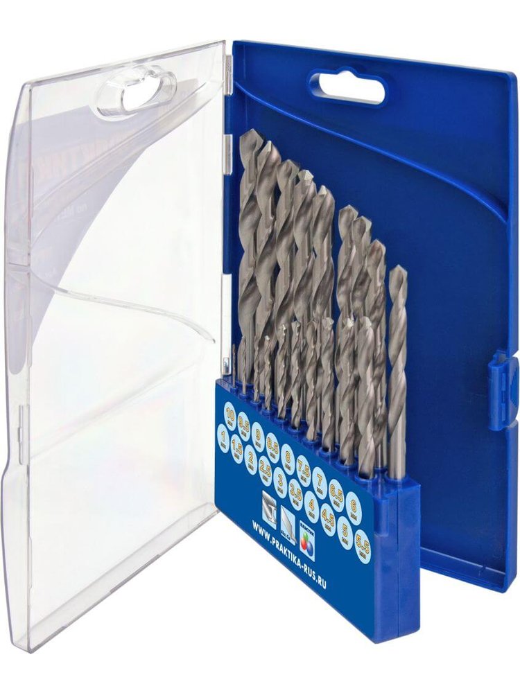Серия ПРОФИ. 1-10 мм, шаг 0,5 мм Набор из 19 HSS-сверл Ø1–10 мм для точного сверления металла, пластика, в кейсе. Удобно, универсально, высокопрочно. Подходит к стандартным дрелям.