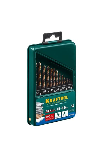 Набор сверл по металлу KRAFTOOL кобальтовые, 13шт, 1,5-6,5мм