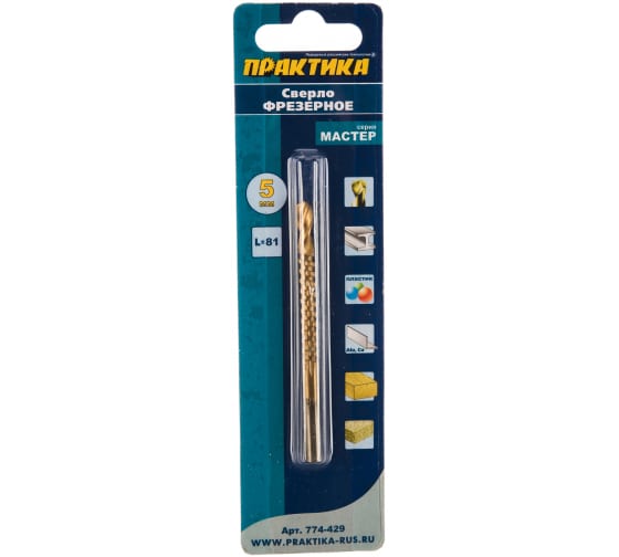 Сверла-фрезы по металлу. Серия "Мастер". Быстрорежущая сталь Р6М5. Сверла фрезерованные изготовленные из быстрорежущей стали. Угол заточки 118°. Предназначены для сверления и рассверливания (расточки) в небольшом объеме отверстий в конструкционных сталях с пределом прочности на растяжение до 800 Н/мм2, алюминии и его сплавах, мягких цветных металлах, древесине, ДСП и твердом пластике. Рекомендуется работать с использованием СОЖ.