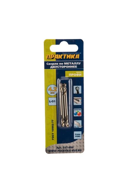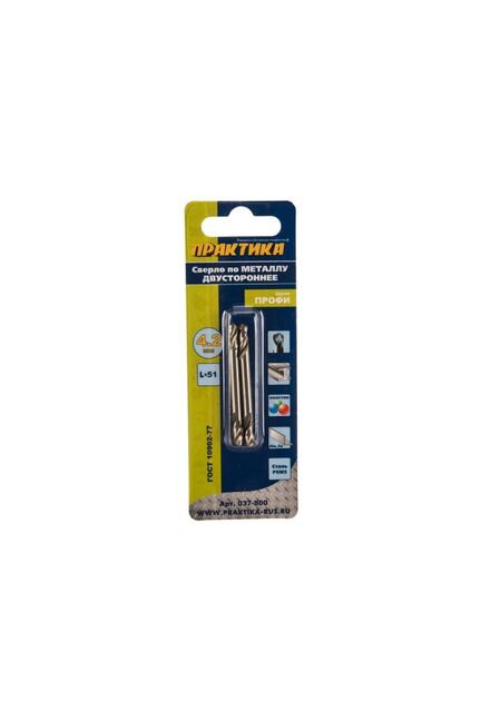 Сверло по металлу двустороннее ПРАКТИКА 4.2*51 мм, P6M5, 2 шт
