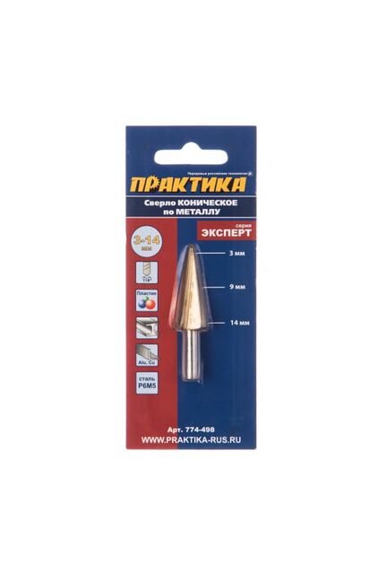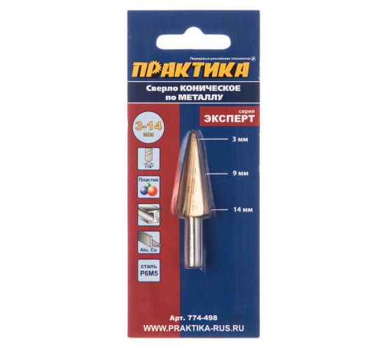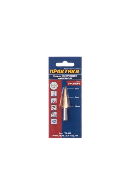 Сверло конусное (3-14 мм) ПРАКТИКА изготовлено из высококачественной быстрорежущей стали Р6М5 и предназначено для получения отверстий в листовых металлических и пластиковых материалах. Покрытие нитридом титана значительно увеличивает сопротивление перегреву во время сверления и срок службы сверла. Рекомендуется работать с использованием смазочно-охлаждающих жидкостей.