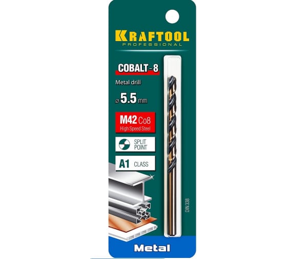 Особопрочное сверло KRAFTOOL 29656-5,5 подходит для проведения работ по следующим видам металла: железо, легированная сталь, нелегированная сталь, цветные металлы, серый чугун, стальное литье, твердые пластмассы. Кобальтовое сверло 5,5×93 мм – долговечное решение для точного сверления стали и твёрдых металлов, устойчиваето перегреву и износу.