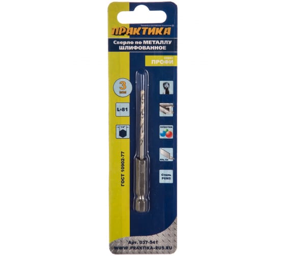 Шестигранное сверло 3,0х81 мм для точного сверления металла, износостойкое, не прокручивается, совместимо с шуруповёртами и дрелями 1/4".