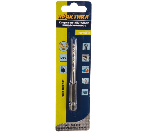 Шестигранный хвостовик, диаметр 3,2 мм, быстрая смена, устойчивая работа по металлу — для точных и аккуратных отверстий.