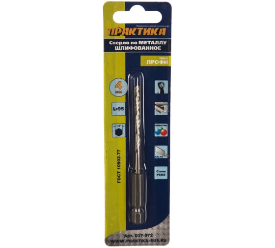 Сверло HEX 1/4", 4,0х95 мм, точная заточка, надёжная фиксация, прочная сталь. Идеально для сверления любых металлов — профессиональный результат.