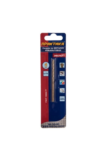 Точное сверление металла, устойчивость к перегреву, прочность. Идеально для стали и нержавейки. Диаметр 4 мм, длина 75 мм, кобальт.