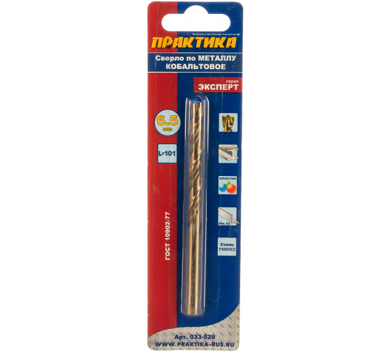 Кобальтовое сверло 6,5х101 мм для точного сверления твёрдых металлов, устойчиво к перегреву и износу, подходит для профессионального применения.