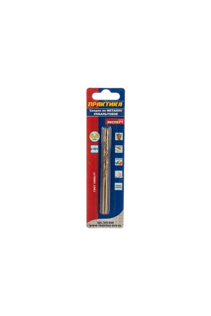 Сверла по металлу. ГОСТ 10902-77 (DIN 338). Быстрорежущая сталь легированная кобальтом Р6М5К5. Серия "Эксперт" Спиральные сверла с содержанием кобальта 5% для самых высоких нагрузок при сверлении металлов. Полностью шлифованные. Специальная W-образная заточка с подрезающими кромками обеспечивает идеальное засверливание без накернивания намеченной точки, эффективное сверление и аккуратные кромки отверстия. Угол заточки острия 135°. Подходит для обработки металлов с пределом прочности на растяжение до 1100 Н/мм2. Рекомендуется работать с использованием СОЖ.