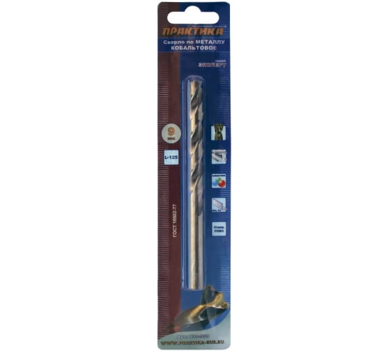 Кобальтовое сверло 9,0х125 мм для сверления твёрдых металлов. Устойчиво к перегреву, высокопрочное, идеальное для стали и сплавов.