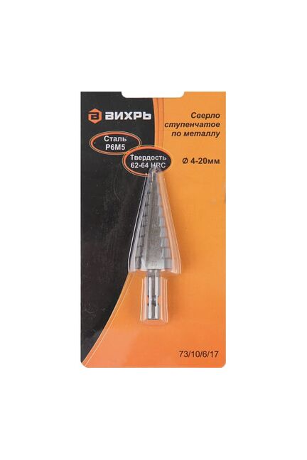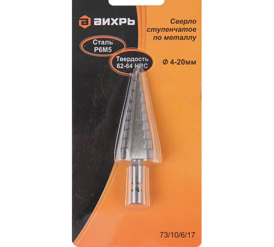 Сверло ступенчатое Вихрь служит для сверления отверстий разных диаметров 4-6-8-10-12-14-16-18-20 мм. Подходит для работ по стали, цветным металлам, нержавейке и изделиям из пластика.