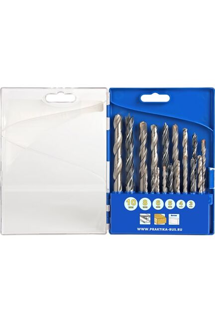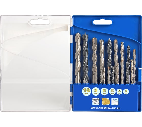 Набор сверл комбинированный ПРАКТИКА "Профи" 3/4/5/6/8/10 мм, металлу/бетону/дереву, 18 шт