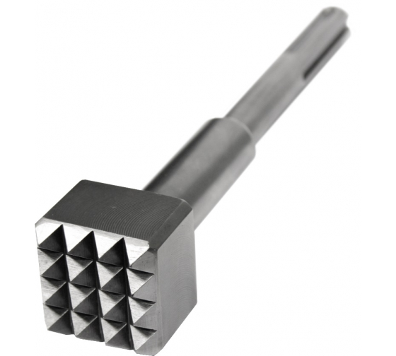 Зубило Бучарда SDS-max (45x45х240 мм; 16Z) ПРАКТИКА предназначена для перфораторов и отбойных молотков. Применяется для работы в ударном режиме без вращения. Представляет из себя ударную платформу с насечкой в виде пирамидок.
