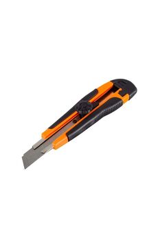 Прочный нож с автоблокировкой, лезвием 18 мм и нескользящей рукояткой. Идеален для резки плотных материалов во время ремонта и строительства.