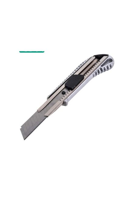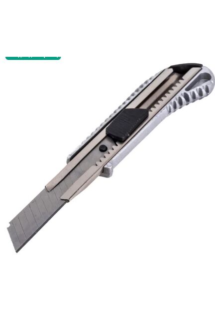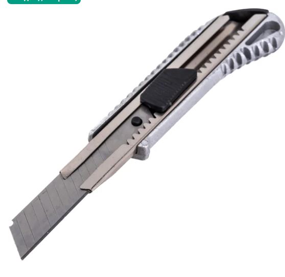 Нож с выдвижным лезвием 18 мм, металлический корпус, металлическая направляющая, автоматический фиксатор, Вихрь предназначен для резки различных материалов в бытовых, хозяйственных или строительных целях. Нож имеет выдвижные, сегментированные, сменные лезвия, которые можно отламывать по мере износа режущей части Прочный металлический корпус, автоблокировка, ширина лезвия 18 мм — для точного и безопасного реза строительных и отделочных материалов.