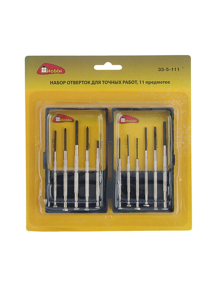 Комплект отверток из 11 предметов поможет точно и удобно выполнять ювелирные и часовые работы, ремонт очков, техники, электроники и других мелких устройств. Качественная сталь и эргономичные ручки обеспечивают надежность и комфорт даже при длительном использовании.
