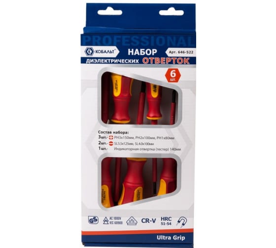 Набор отверток диэлектрических КОБАЛЬТ Ultra Grip (6 шт.)