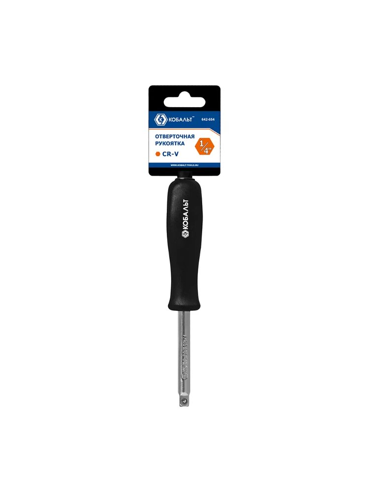 Отвертка рукоятка КОБАЛЬТ квадрат 1/4" для установки головок и внутренним квадратом 1/4'' для установки воротка в рукоятку для увеличения крутящего момента, изготовлена из хромванадиевой стали. Эргономичная рукоятка с квадратом 1/4" для работы с битами и головками, обеспечивает надежный хват и быстрый доступ к крепежу.
