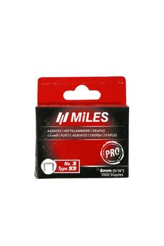 Скобы тип 53 Miles N3-8-D предназначены для степлеров MiLES TP-5525, TP-5560, TP-5561, TS-5580, TS-5592, TS-5595, TP-6001, TA-5596, TS-5585K, TA-5597, TPS-5550, TS-5552. Применяются для скрепления между собой различных материалов. Скобы изготовлены из среднеуглеродистой стали, закалены, заострены и оцинкованы. Количество в упаковке – 1000 шт. Закалённые скобы тип 53, 8 мм, 1000 шт: для прочного крепления тканей, кожи, древесины. Не деформируются, подходят для большинства степлеров.