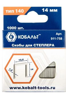 Скобы КОБАЛЬТ предназначены для степлеров. Применяются для скрепления между собой различных материалов. Универсальные скобы тип 140, 14 мм, DP-заточка, 1000 шт., для прочного крепления материалов в строительстве и ремонте, сталь с антикоррозийным покрытием.
