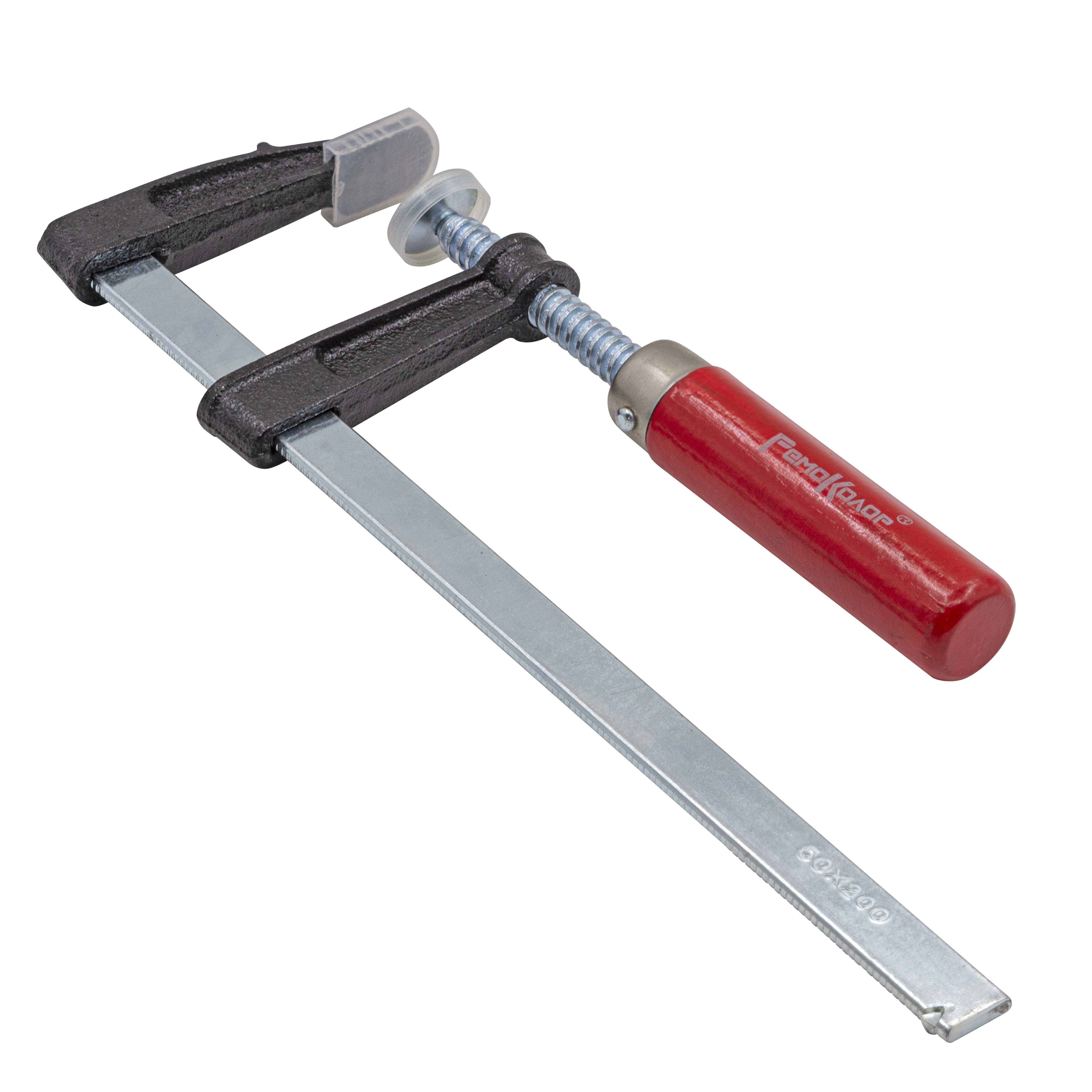 Материал подвижной и неподвижной губок струбцины - ковкий чугун. Деревянная рукоятка. Марка материала резьбового штока – сталь А3. Защитное покрытие корпуса – порошковая окраска. Защитное покрытие резьбового штока – цинк. Пластикеовые накладки на неподвижную часть и шток. Применение: F-образная струбцина используется при столярных работах, позволяет фиксировать заготовки из металла, древесины и других материалов. Деталь помещают между губками, одна из которых подвижна и служит для регулировки величины захвата. Винтовой зажим позволяет прикладывать значительное усилие для надежной фиксации. Защитные накладки предотвращают повреждение детали. Элементы конструкции выдерживают высокую температуру, поэтому струбцина подходит для проведения сварочных работ, при этом пластиковые накладки необходимо снять. Глубина захвата 50мм. Ширина раскрытия губок 200мм. F-образная струбцина 50×200 мм, сталь, фиксирует детали без повреждений, антикоррозийное покрытие, удобная рукоятка для точной работы.