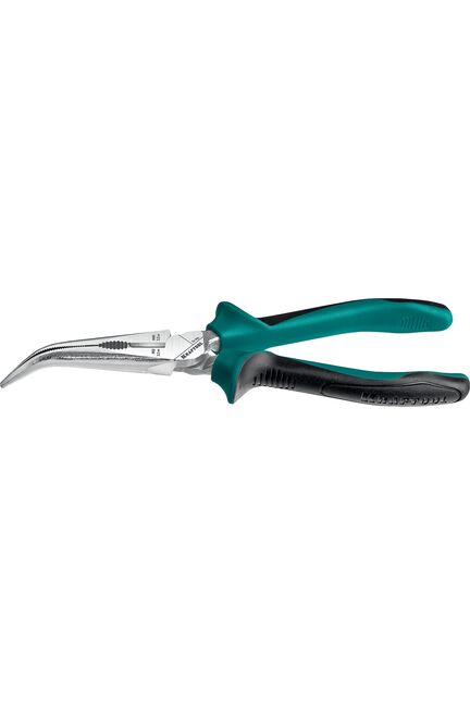 Профессиональный инструмент со смещенным шарниром отличается высокой надежностью и экономит усилия при проведении сложных работ Изогнутые тонкогубцы 200 мм: высокопрочная сталь, точный захват, доступ к труднодоступным местам, идеально для электромонтажа и ремонта.