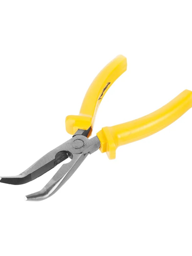 Изогнутые тонкогубцы 180 мм с обрезиненными ручками для точной работы, оптимальны для электромонтажа и труднодоступных мест.