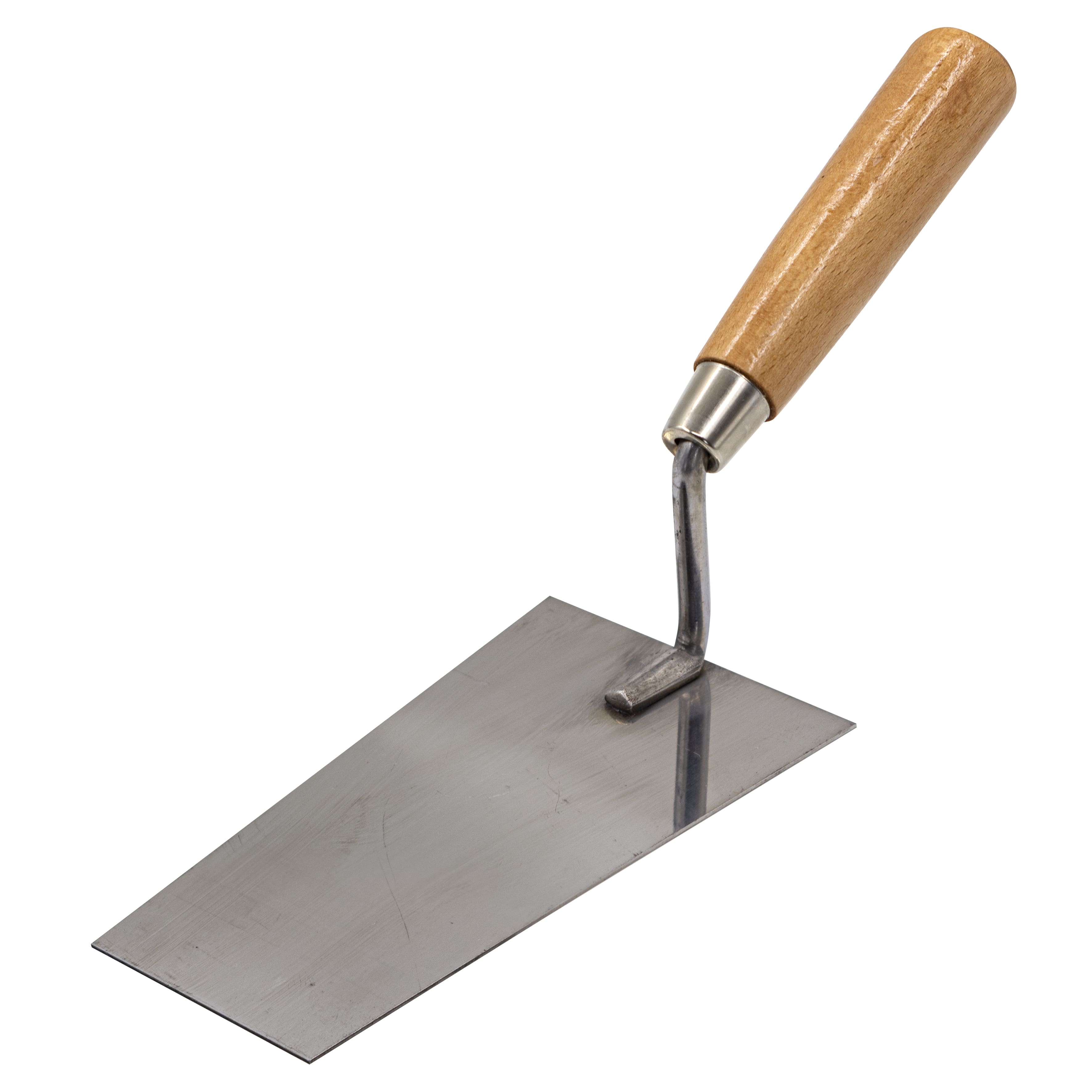 Нержавеющая сталь 0,8 мм, рукоятка из бука, пропитанного воском. Применение: для размешивания, отмеривания, нанесения и разравнивания гипсовых или цементных растворов. Удобная трапециевидная кельма 160×60 мм с деревянной ручкой для точного нанесения и выравнивания штукатурки, устойчива к коррозии.