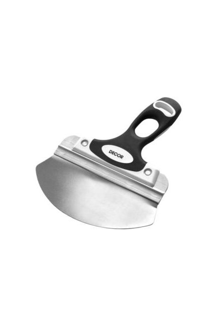В шпателях серии «Black White» используется алюминиевая проставка (планка), которая надёжно удерживает нержавеющее полотно, компенсирует нагрузку на лезвие при работе, так же предотвращает деформацию полотна при работе. Прочный шпатель 200 мм из нержавеющей стали для ведра с удобной 2К ручкой — долговечный и эргономичный инструмент для смесей и шпатлёвки.
