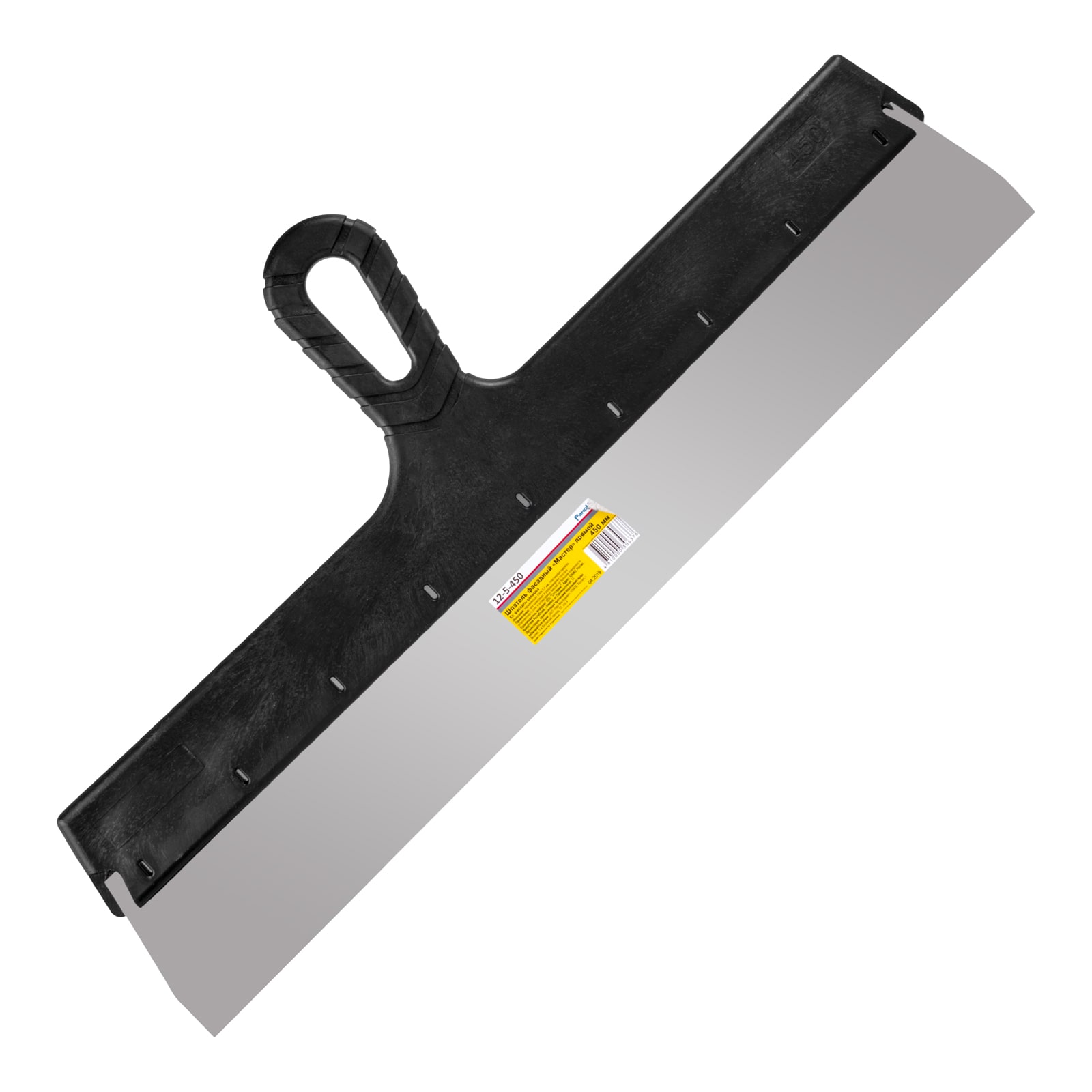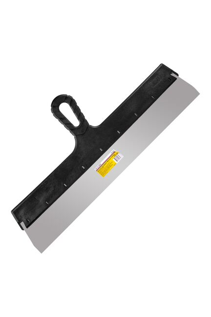 Материал: нержавеющая сталь, пластиковая рукоятка. Толщина стали – 0,4 мм. Применение: для нанесения и разравнивания толстого шпаклевочного слоя и штукатурных смесей на большие поверхности. Фасадный шпатель 450 мм с лезвием из нержавеющей стали и удобной пластиковой ручкой. Для ровного нанесения и выравнивания фасадных смесей.