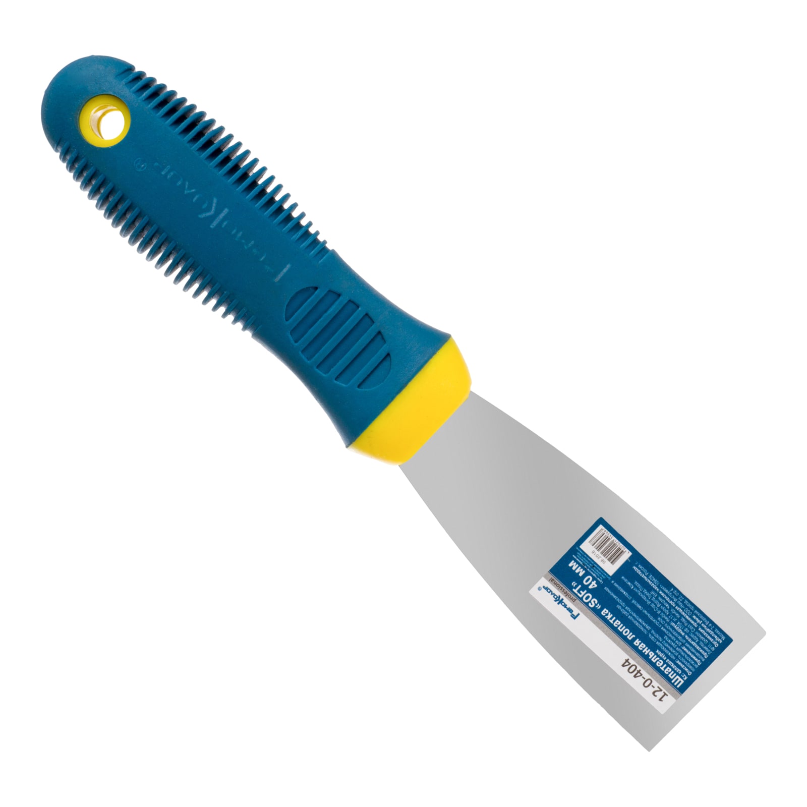 Нержавеющая сталь, полированная рабочая поверхность усиленного полотна, прорезиненная двухкомпонентная рукоятка. Применение: для нанесения строительных смесей, сглаживания и выравнивания шпаклевочного слоя. Зеркальная нержавеющая сталь, комфортная 2К-ручка, ширина 40 мм — профессиональный выбор для шпатлевки и отделочных работ в трудных местах.