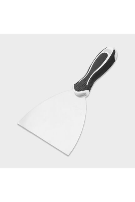 Полотно шпателя изготовлено из нержавеющей стали. Оснащен эргономичной ручкой. Шпатель предназначен для нанесения, выравнивания и сглаживания шпаклевочного слоя на большой поверхности. Надёжный шпатель 80 мм из нержавейки с эргономичной двухкомп. ручкой для комфортной работы и точного выравнивания строительных смесей.