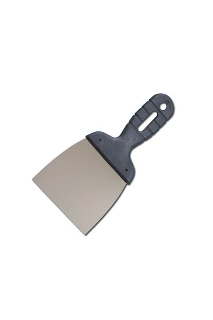 Шпатель из нержавеющей стали, пластмассовая ручка. Назначение: Для заделки швов и трещин, нанесения и выравнивания строительных растворов. Широкий шпатель 100 мм из нержавеющей стали с эргономичной пластиковой ручкой для точного нанесения и легкой очистки, долговечный и удобный.